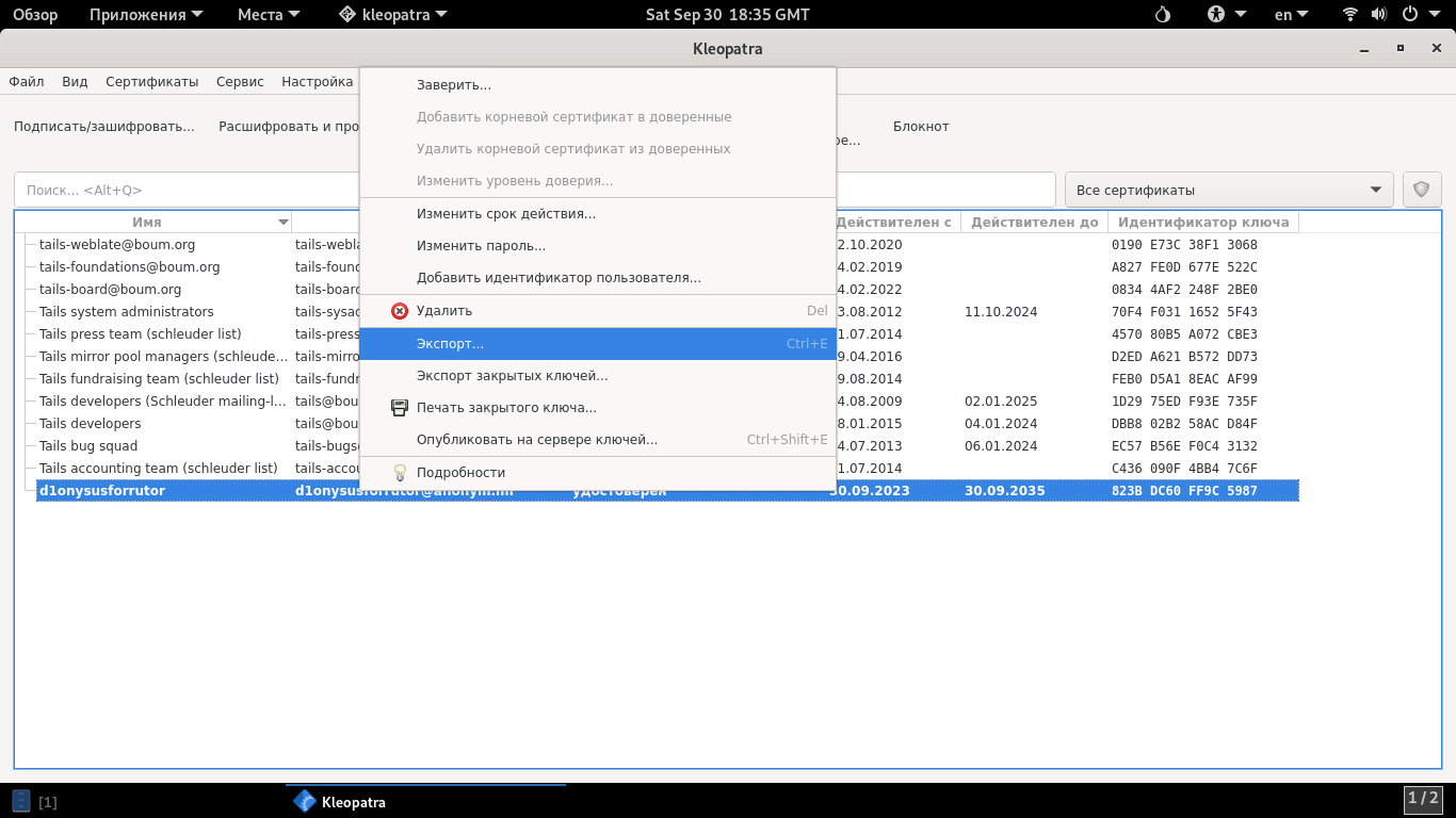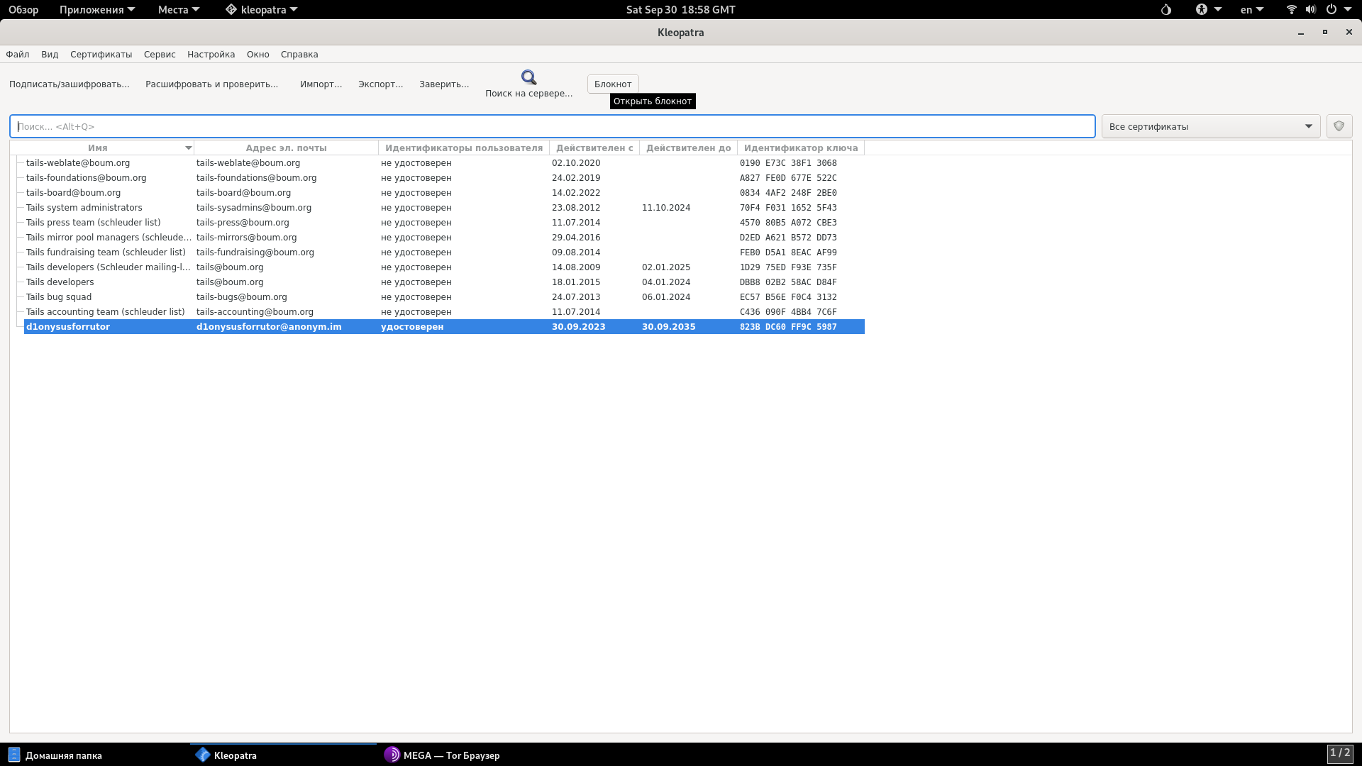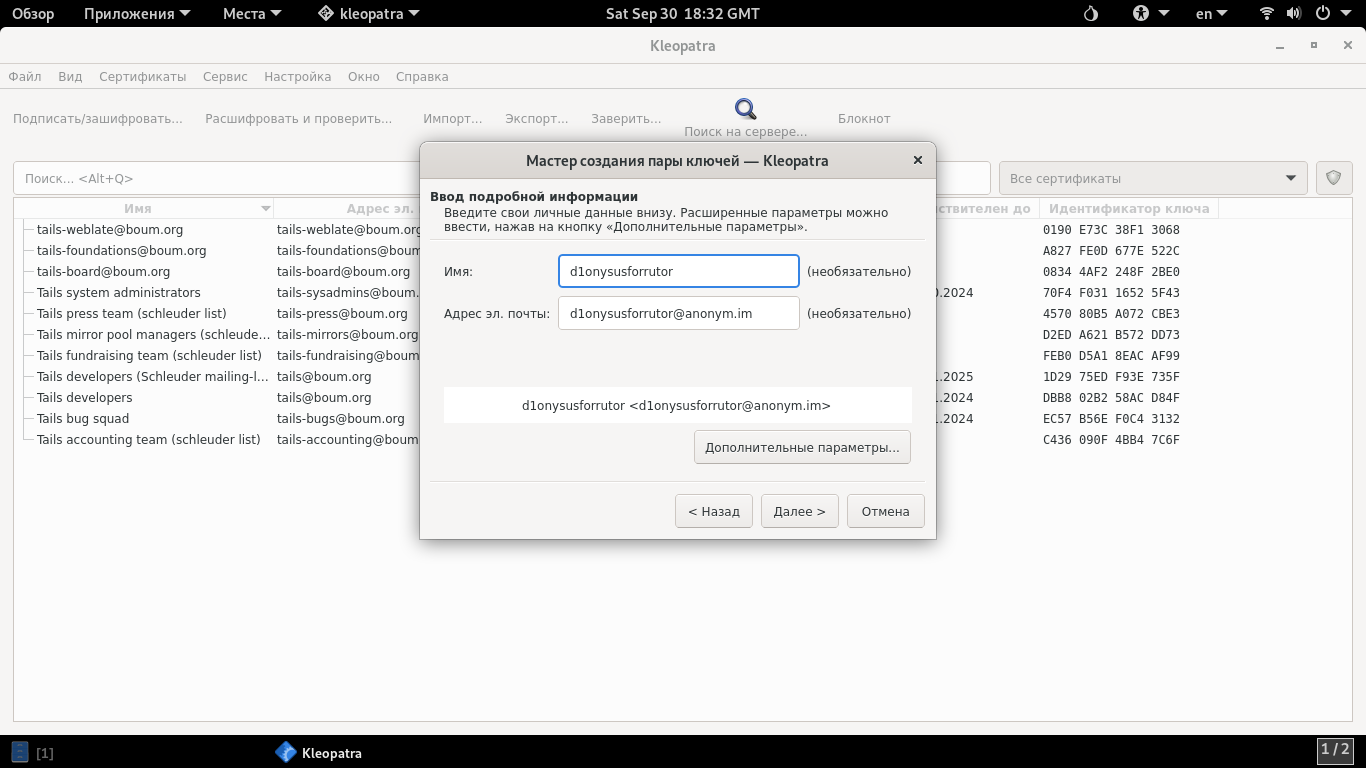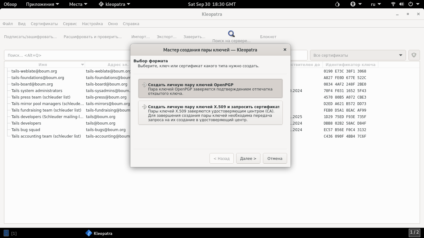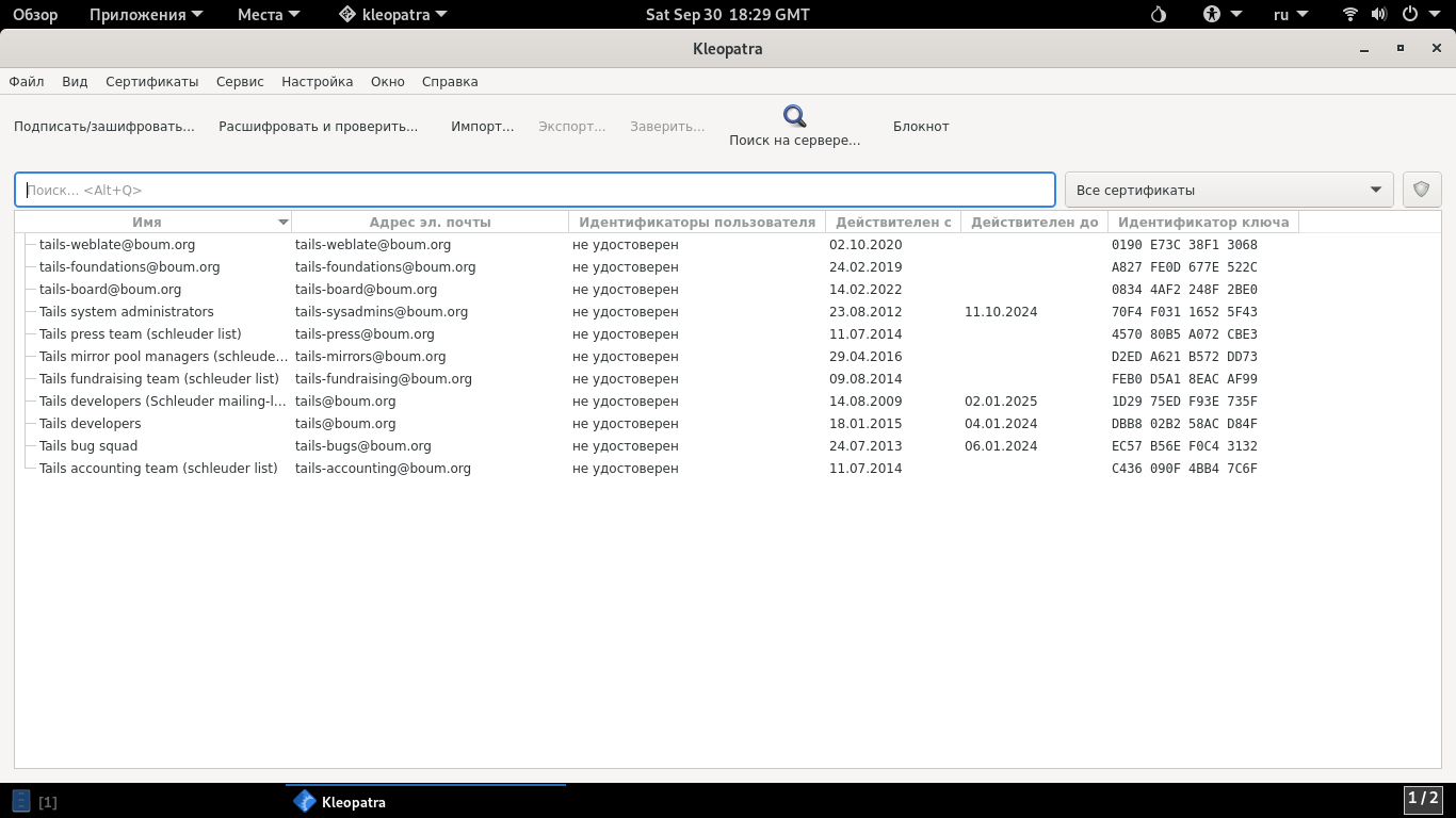 В сегодняшней теме обсудим инструмент для работы с PGP в Tails под названием Kleopatra.