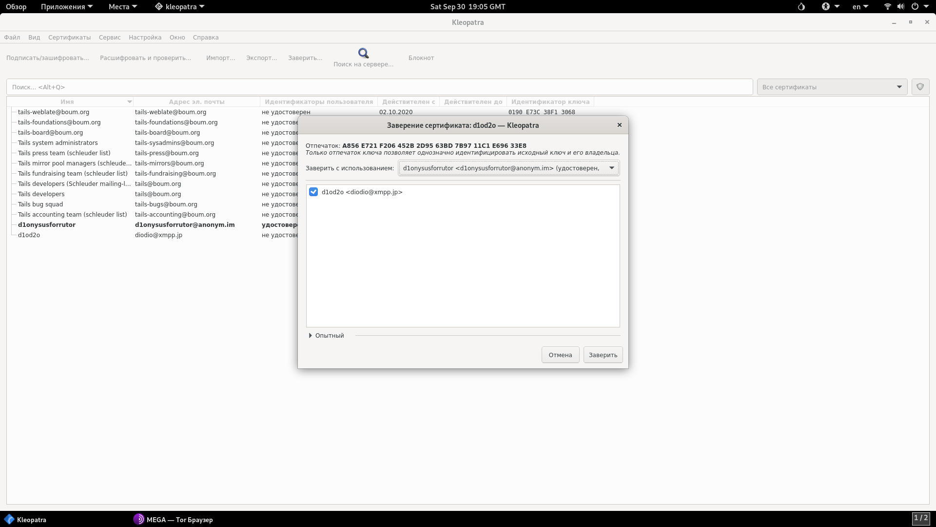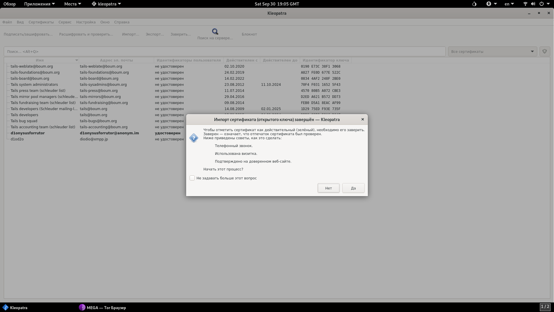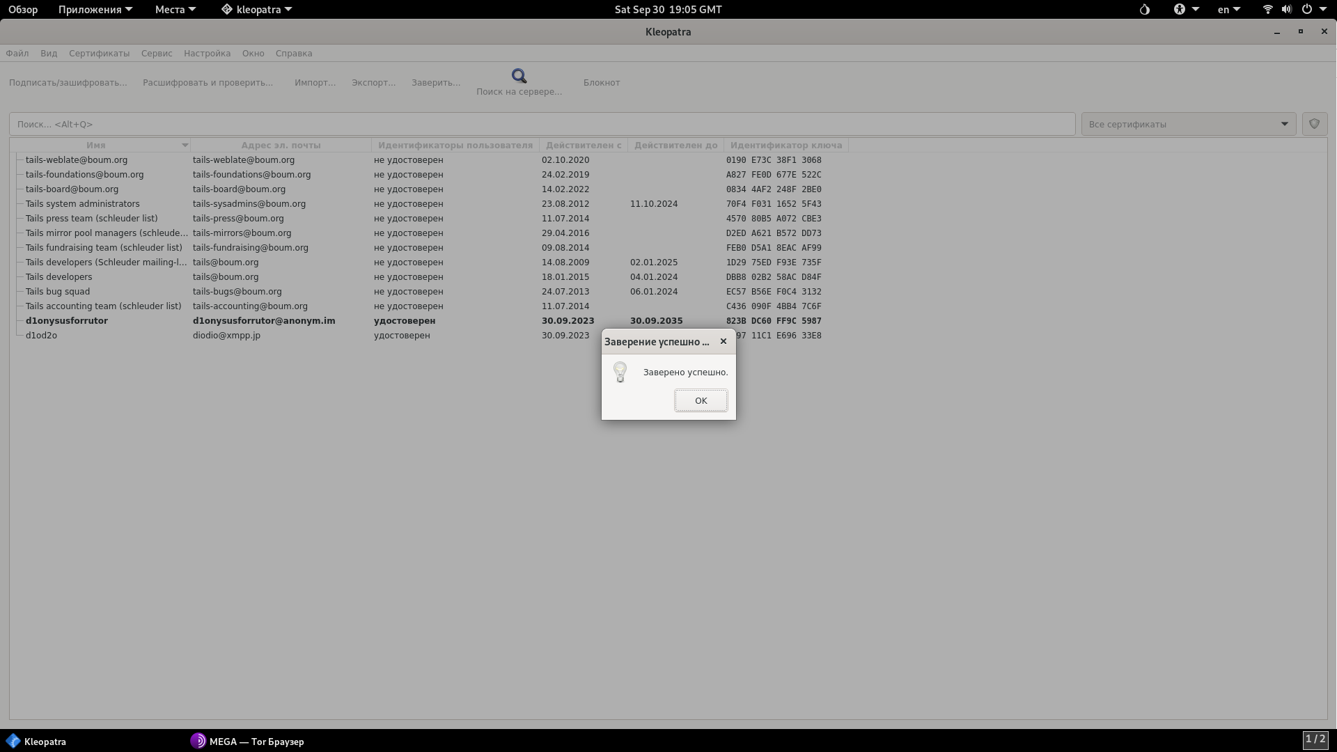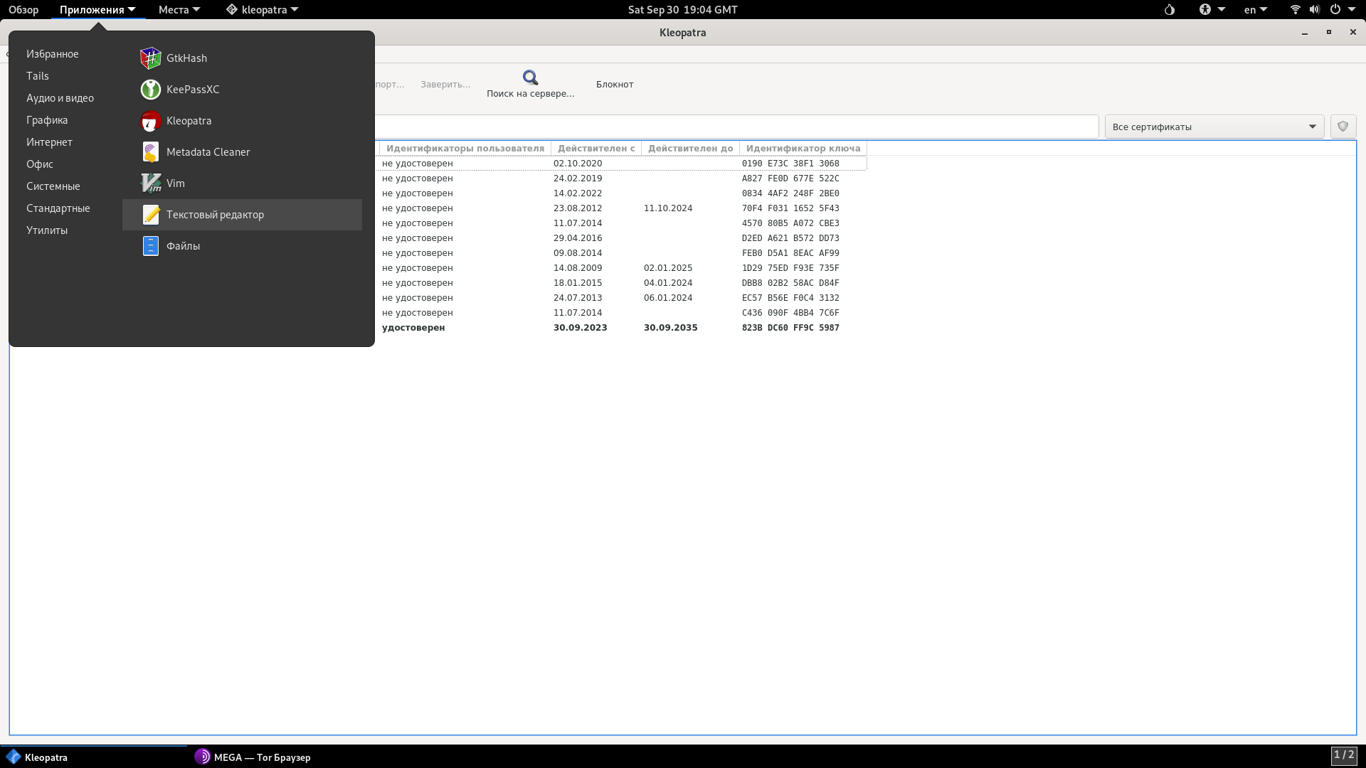 В сегодняшней теме обсудим инструмент для работы с PGP в Tails под названием Kleopatra.