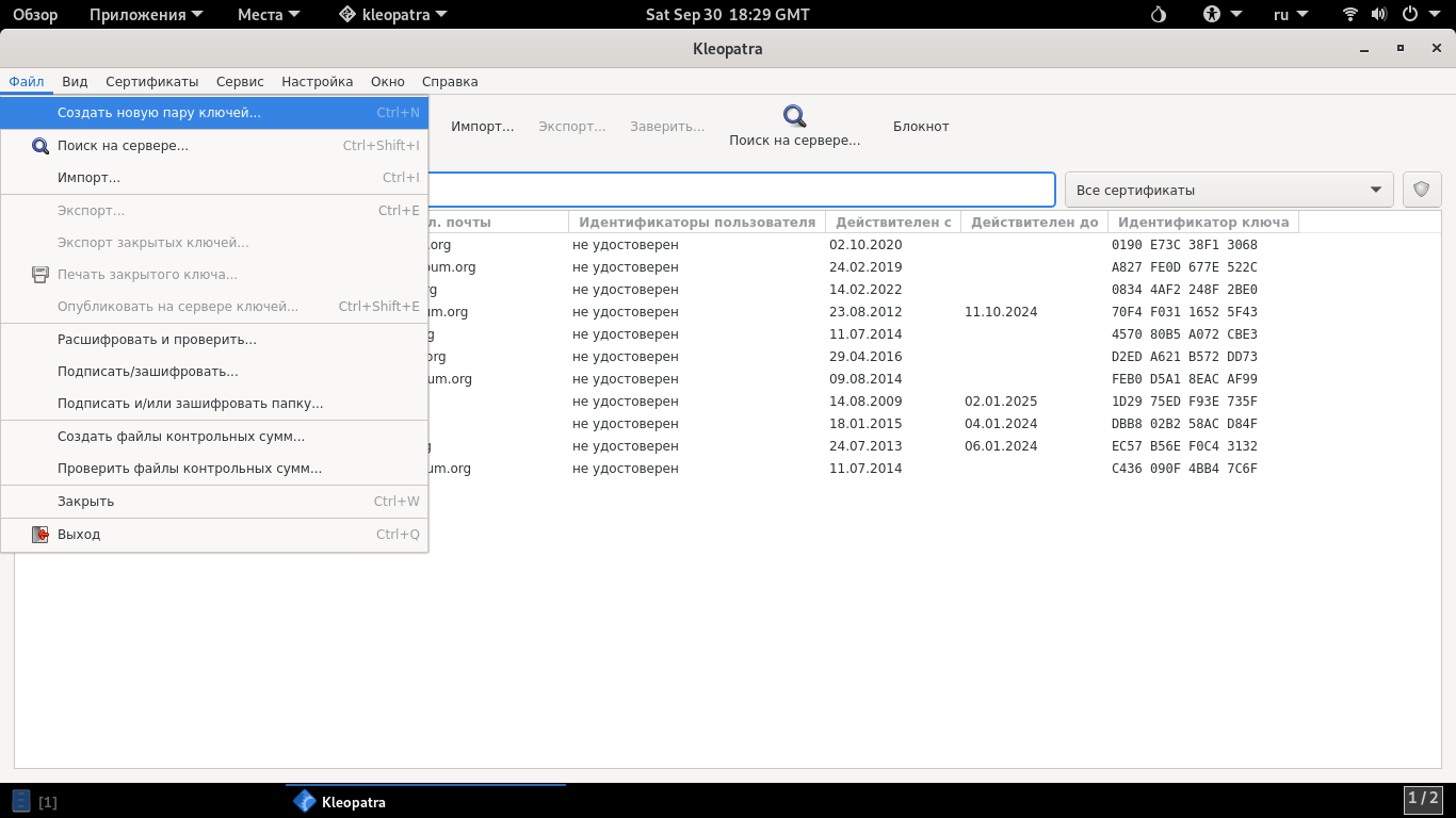 1. Начинаем с запуска Kleopatra.