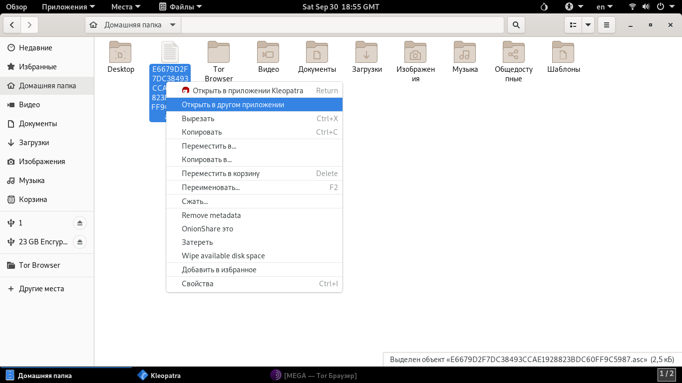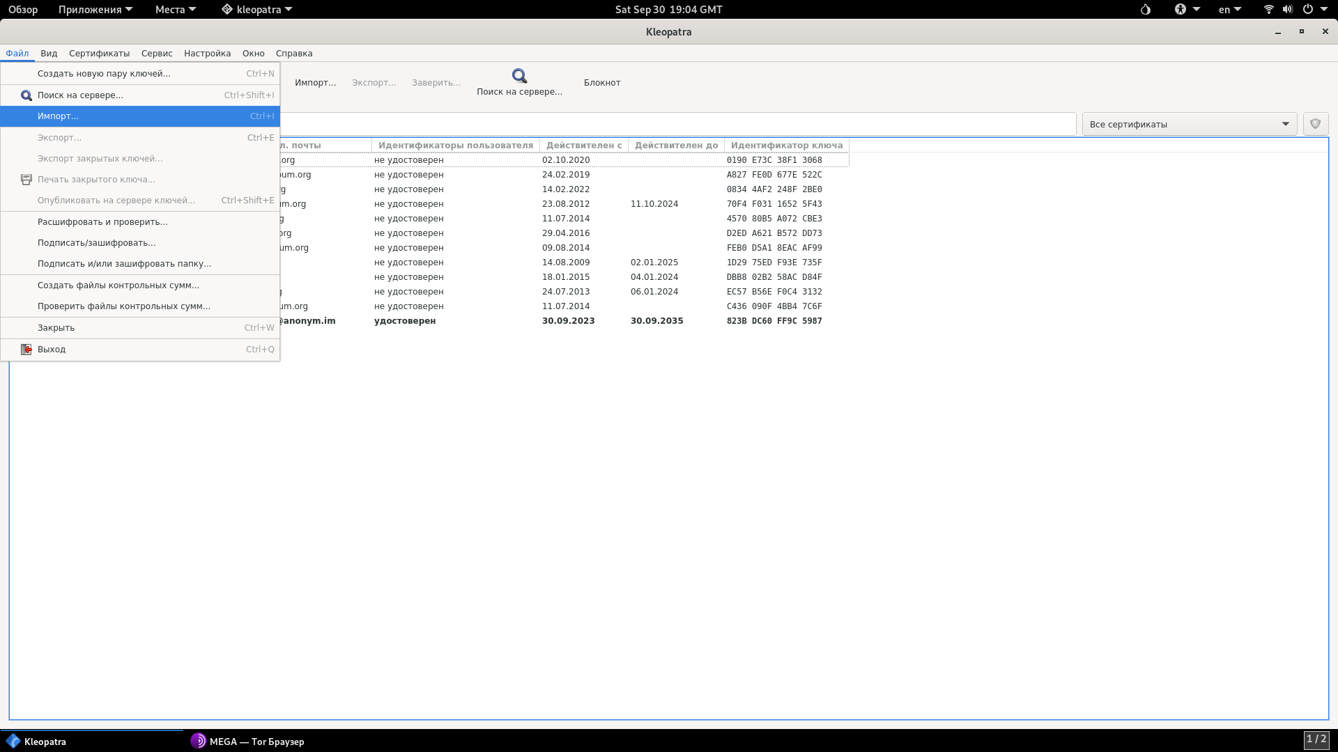 2. Заходим в Kleopatra, Файл - Импорт и выбираем файл из шага выше​