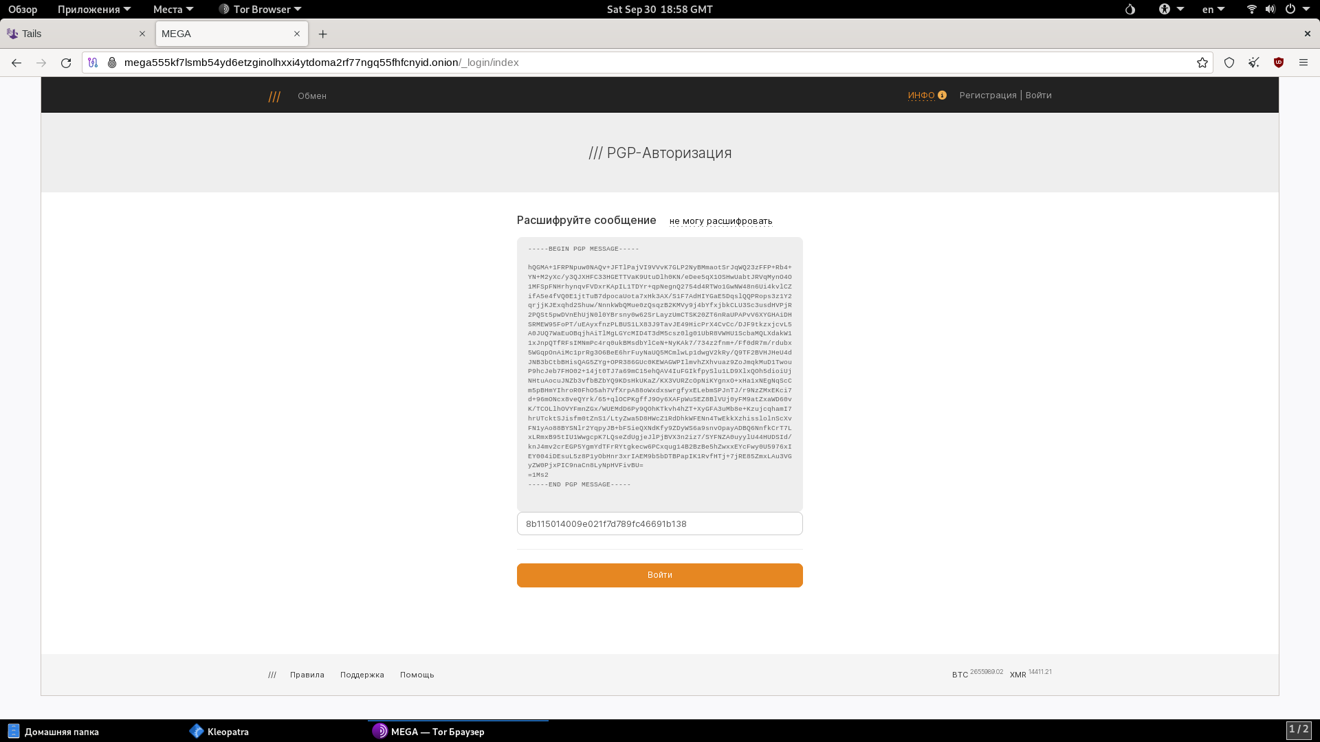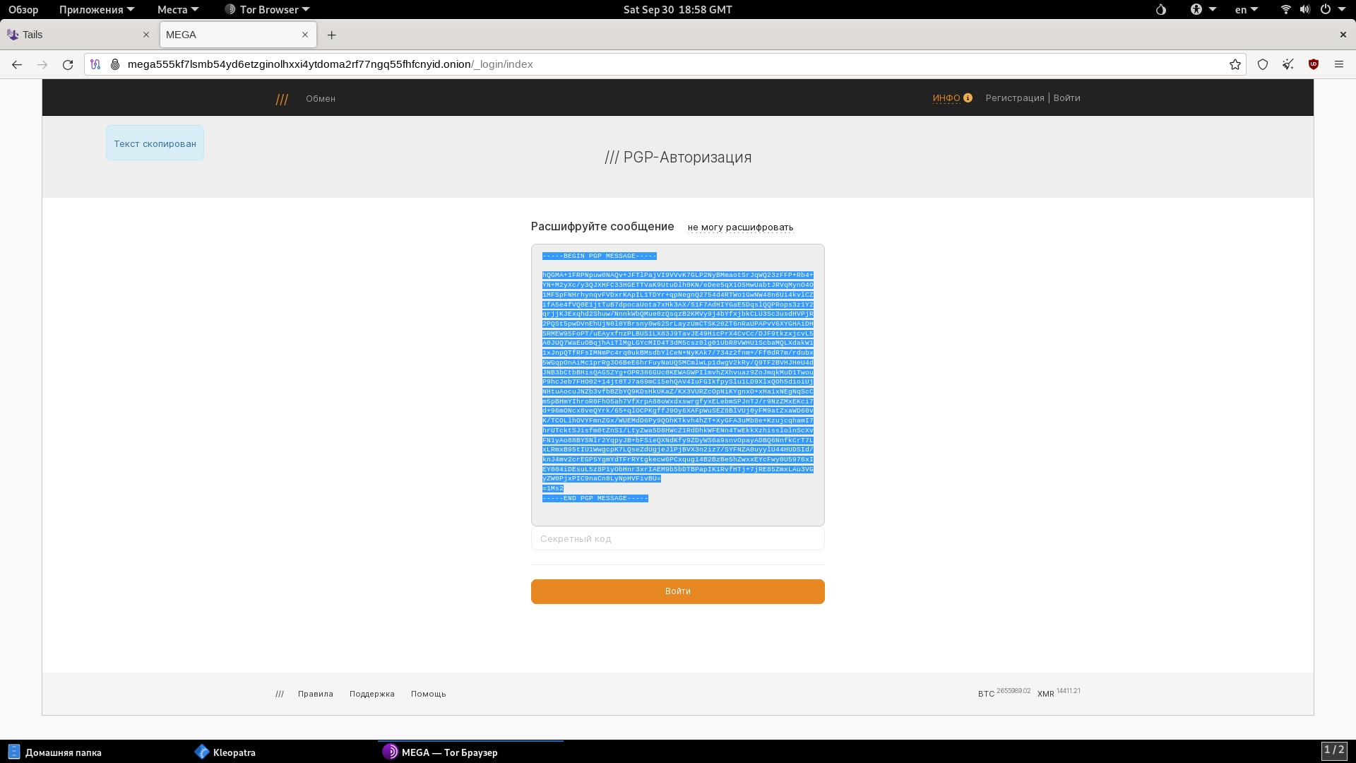 Первые разы могут возникать различные проблемы, поэтому рекомендую сначала потренироваться с расшифровкой сообщений, прежде чем ставить 2FA PGP на основной аккаунт.