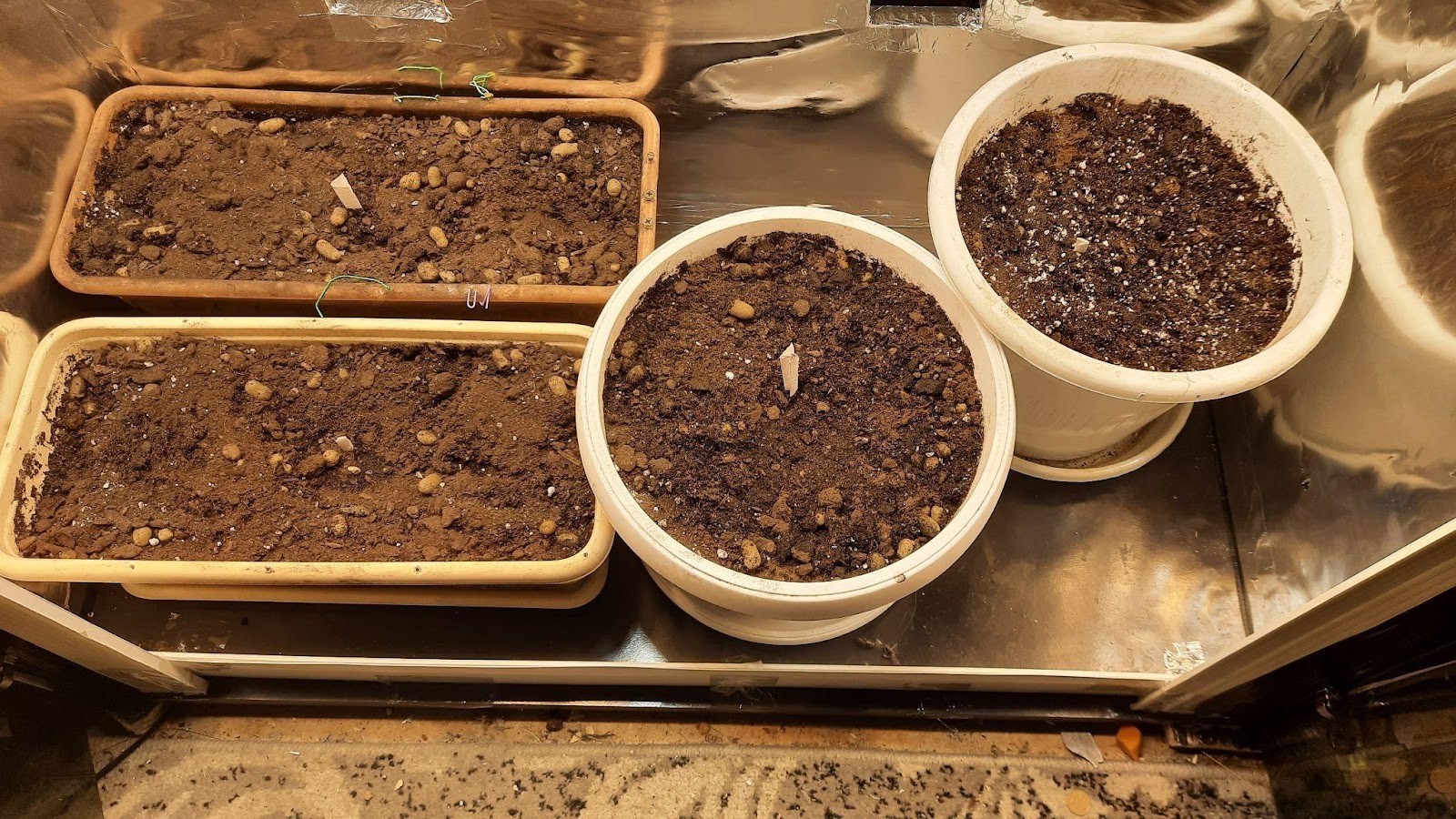 И так, проращивание прошло без проблем по методу от Семяныча и уже 12 ноября семечки вошли в грунт. Балконные горшки были на 6 литров, а белые на 8. Первую неделю просто изредка опрыскивал землю около ростка и держал их под пластиковыми стаканчиками, ничего особенного. Вода из под крана с PH - 7.1 и PPM -