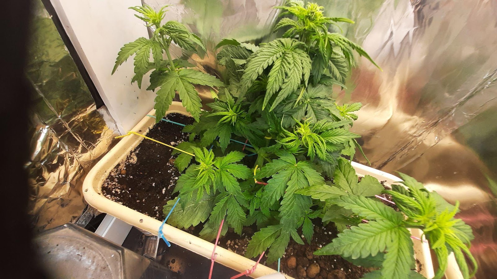 Прошла еще неделя роста, и результаты были многообещающими. Кустики росли по часам, фаворитом же был “дьявол” в балконном горшке высотой 26 сантиметров. Очень был рад этому) Zkittlez Auto тоже не отставал и стабильно рос, а вот безымянная семечка не радовала совсем. Также была применена методика LST и ситуация с микроклиматом немного стабилизировалась - гигрометр показывает 25 градусов и 41% влажности, а кустики подают признаки цветения. Лью уже по литру на горшок, Zkittlez по 0.5