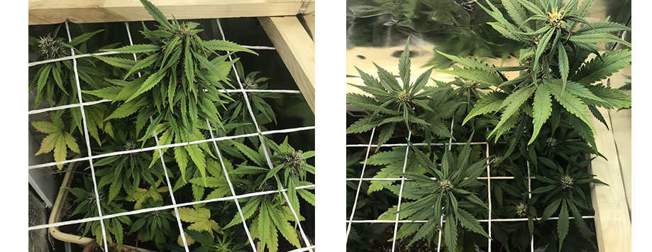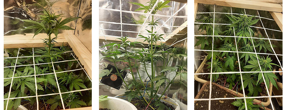Всю следующую неделю я восхищался скоростью роста “дьяволов” и удивлялся с того, что фаворита перегнал его коллега, д ещё и чуть ли не в 1.5! Не верилось, что растишки так активно растут и не страдают от нехватки веществ, но чуть позже это все аукнется… Кстати, для своих любимых девочек я сделал ScrOG сетку и установил её в бокс, такую методику применял впервые, было очень интересно, как она будет задавать форму растению и скажется ли это на урожае. C климатом все было