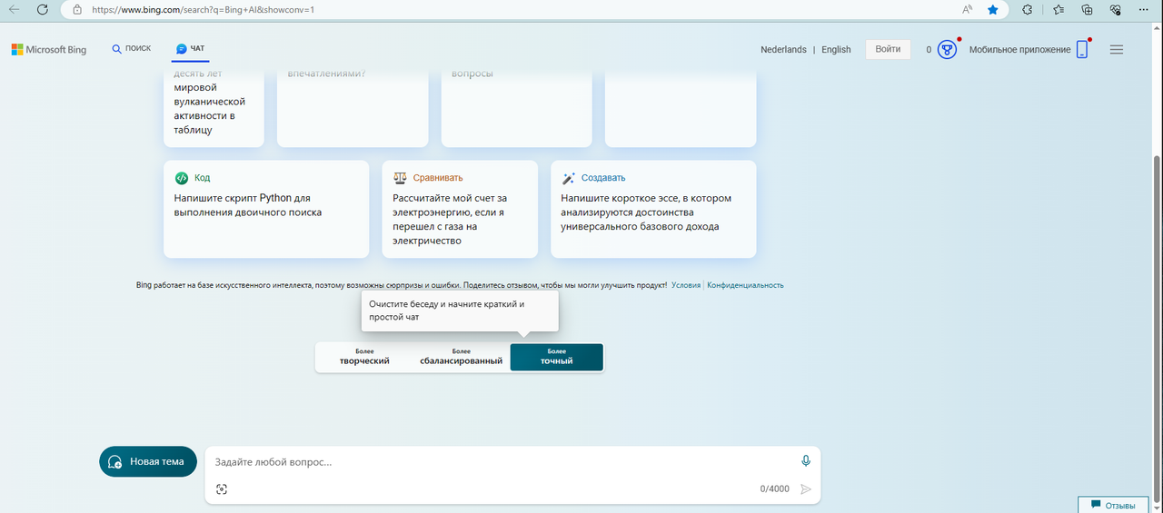 И так, чтобы обойти это ограничение, воспользуемся бескорыстием Microsoft, вложившей в Open AI (разработчика Chat GPT) больше 13 млрд долларов для развития своего поисковика Bing