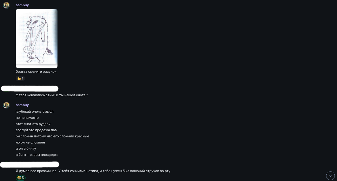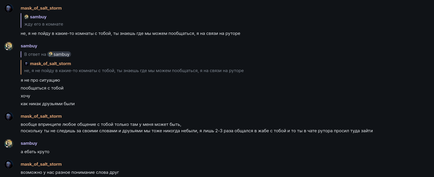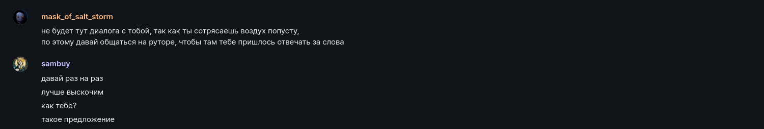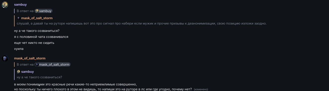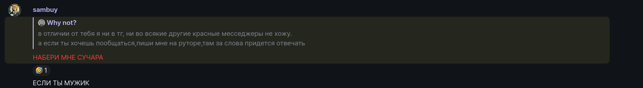 После публикации Сэм писал мне в элемент, нарезая из контекста чтобы оболгать еще сильнее: