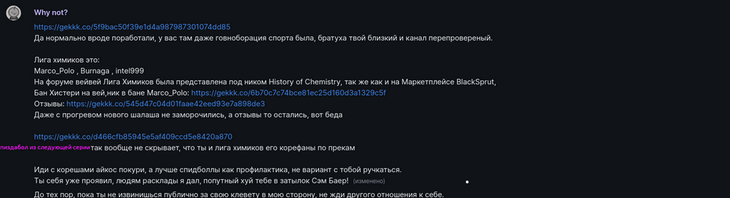 На форуме В**В** Лига Химиков была представлена под ником History of Chemistry, так же как и на Маркетплейсе BlackSprut,