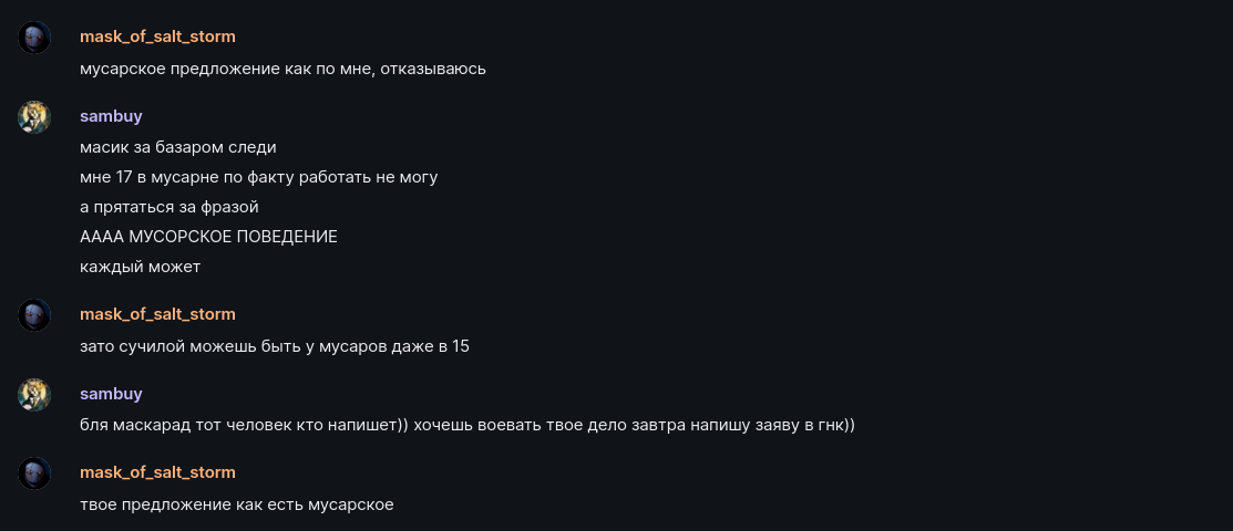 Вырезает мой ответ вырвав из контекста и постит у себя, называя нас мусорами.