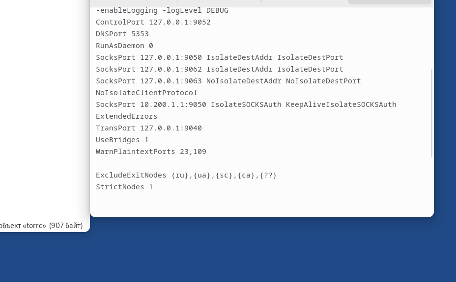 в файле папки тора .torrc