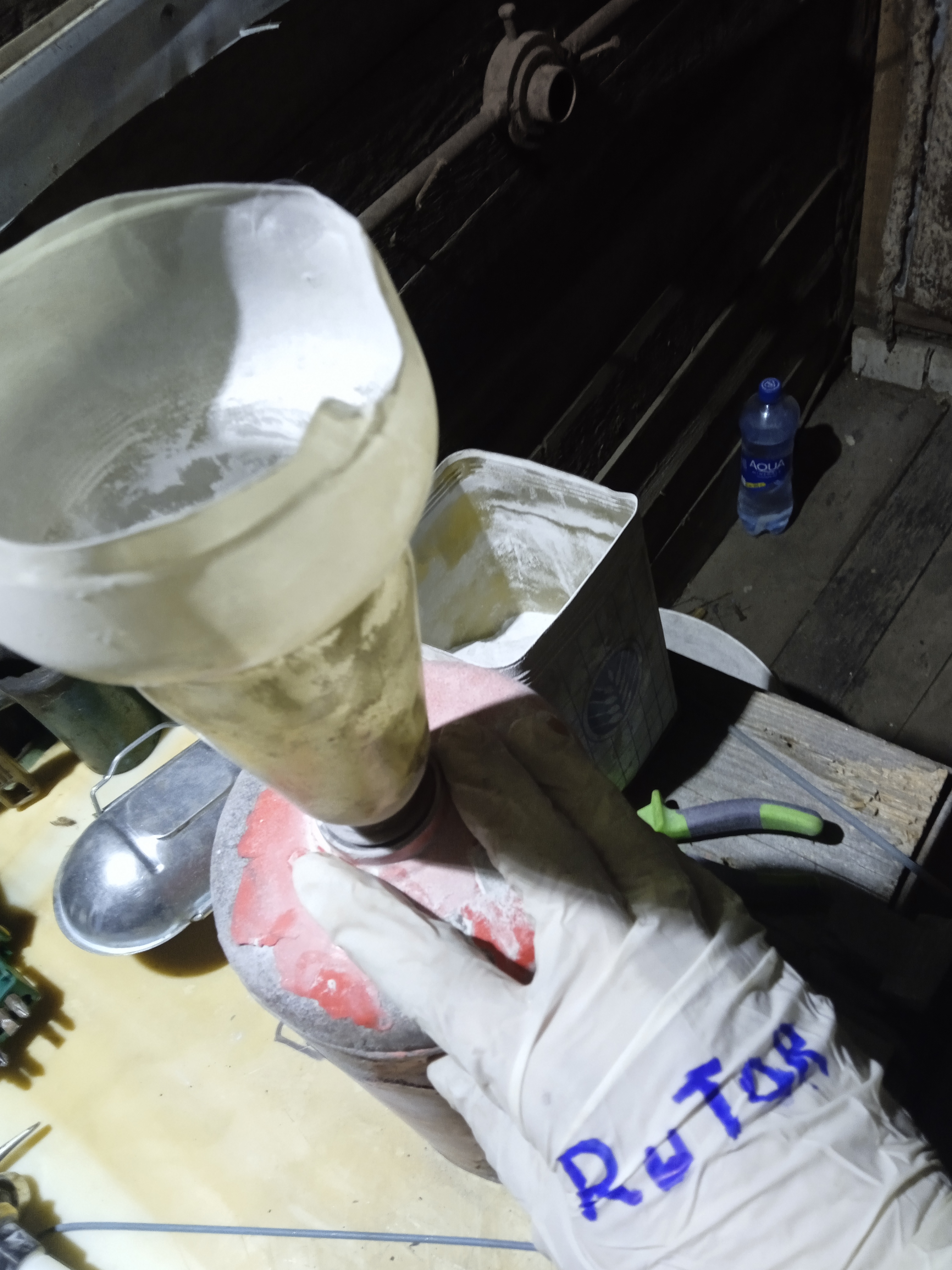 Обматываем сверток проводом, делаем сверху петельку и перематываем изолентой для того, что бы потом их можно было извлечь при помощи крючка из электрода. Помещаем свёртки в баллон и засыпаем поверх порошком перемешанным с перцем, который мы извлекли ранее из него. Можно засыпать песок или вообще сразу пав.