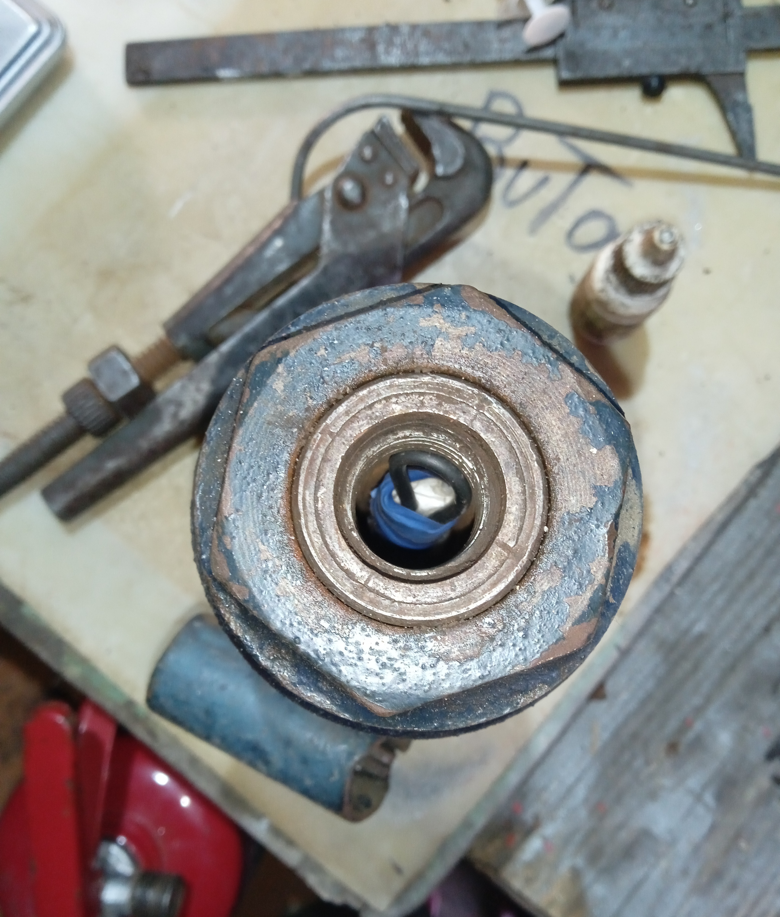 Винт от руки выкрутить очень сложно. Он развальцован на резьбе, но при помощи двух газовых ключей это не проблема. Выкрутив, закладываем груз и закручиваем обратно.