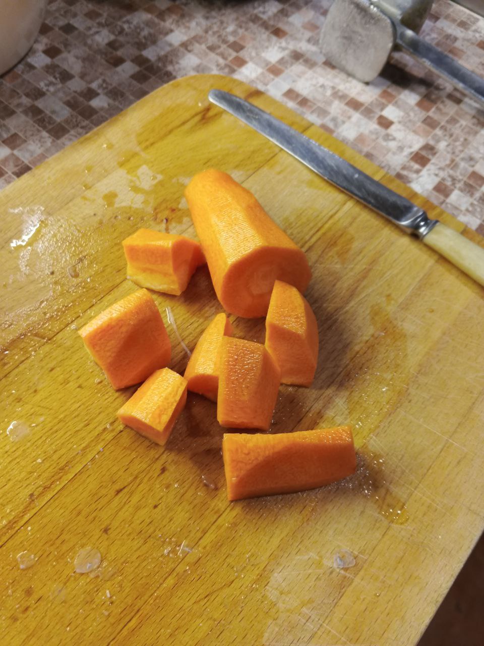 Морковь нарезаем крупными кубиками