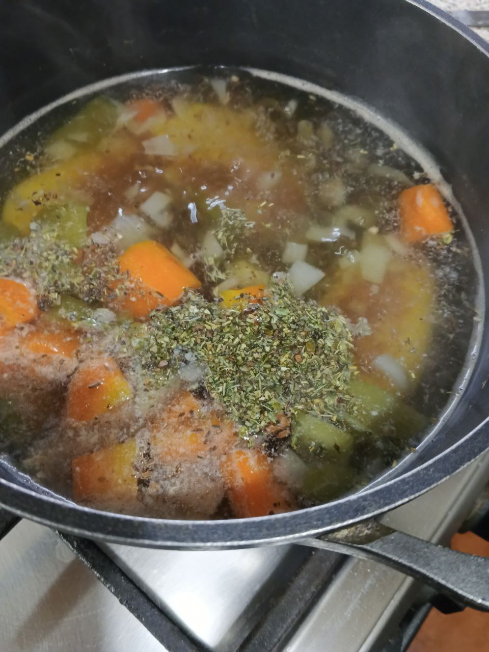 Ставим варить овощи,солим и добавляем специи