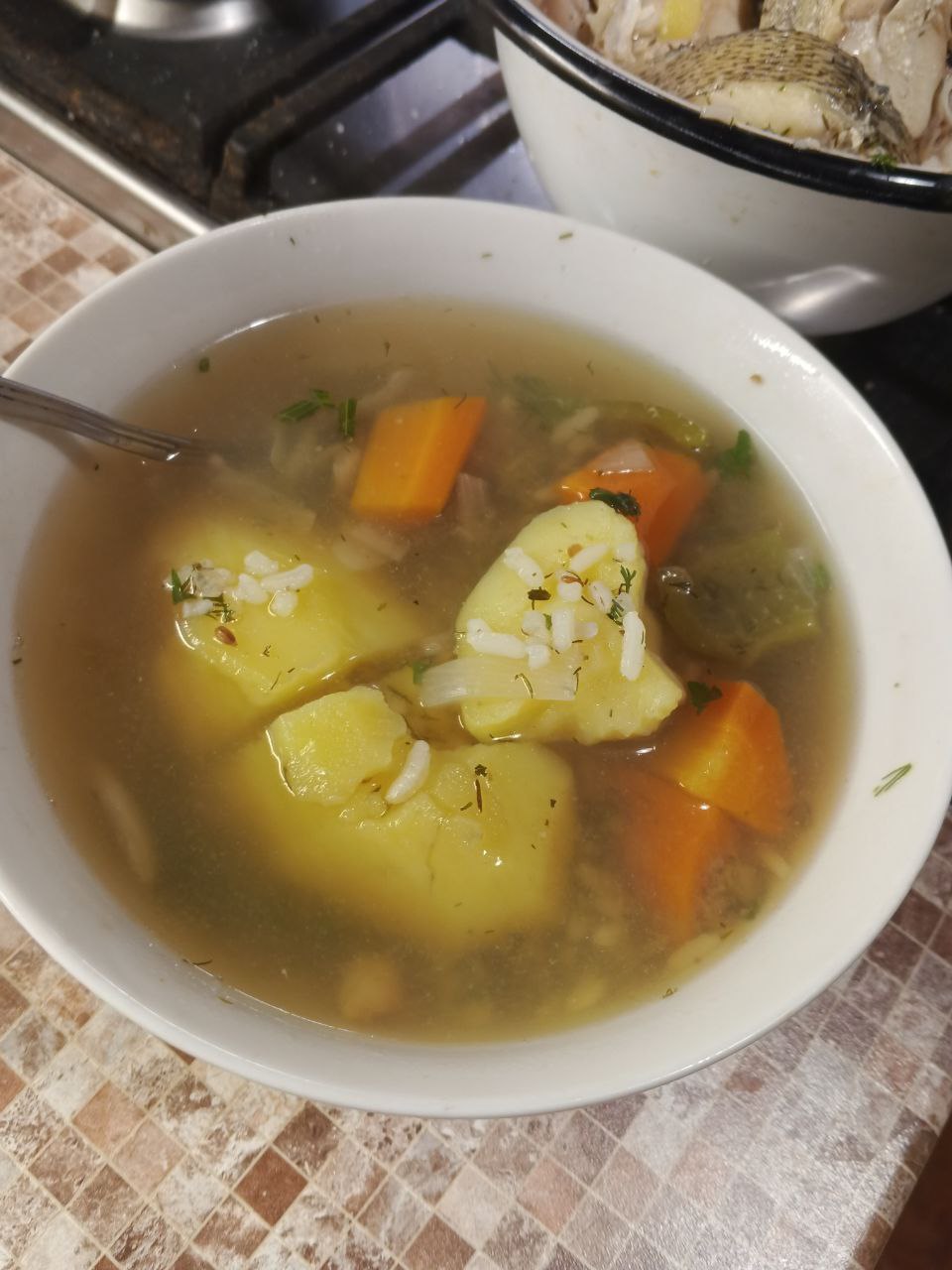 Самарыба - просто класс , но бульон - нет. Нет в бульоне насыщенности и это изза судака , слишком диетическая рыба, нужно делать совместно с сазаном или сомом - тогда другое дело бует - проверено!